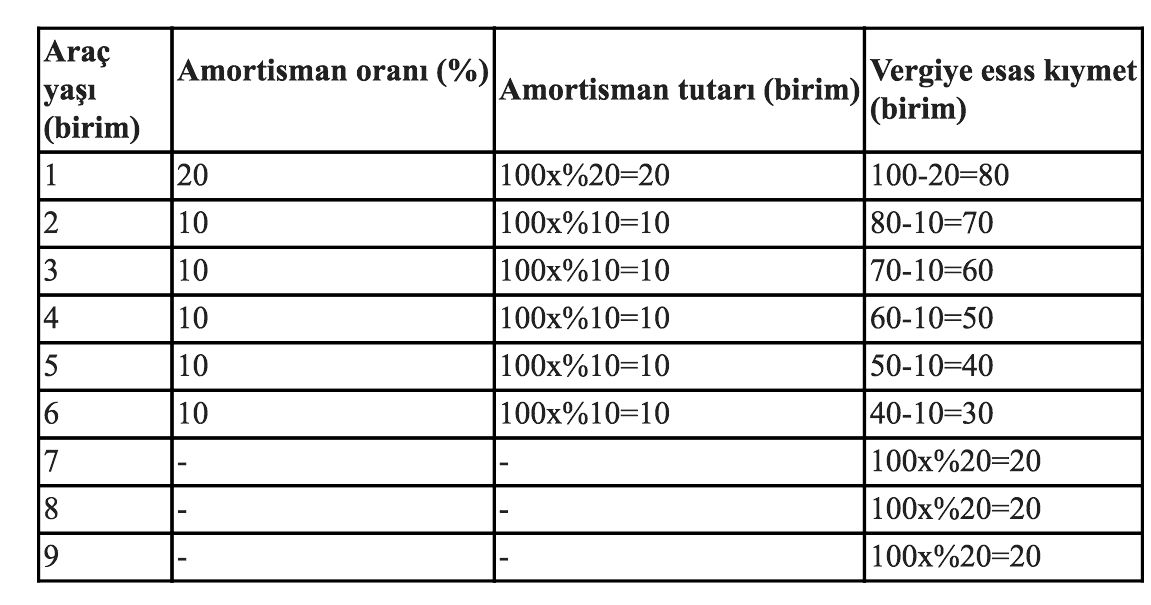 Amortisman indirimi sonunda bulunan ve vergiye esas kıymetin tespitinde aracın model yılındaki FOB kıymetiyle çarpılacak oranlar: